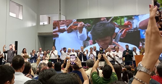 “Senhor presidente, agora mesmo, o senhor usa sua liderança para apoiar e acolher. Esteve no hospital, na comunidade, com os vencedores e também com os que mais sofrem. Quando o senhor visita, o povo sente o abraço e o carinho, não apenas um gesto protocola”, disse.