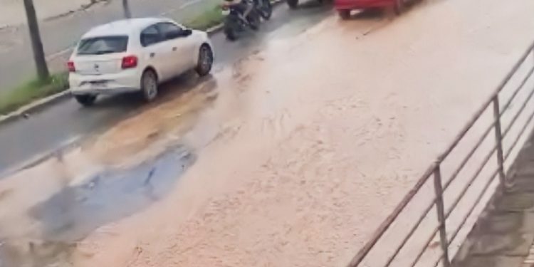 O tráfego de veículos ficou prejudicado na tarde desta quinta-feira (13), após o rompimento de uma adutora em frente ao Tribunal de Contas do Estado, na Avenida Ceará. O forte fluxo de água, que inundou a avenida, gerou uma cratera no local.
