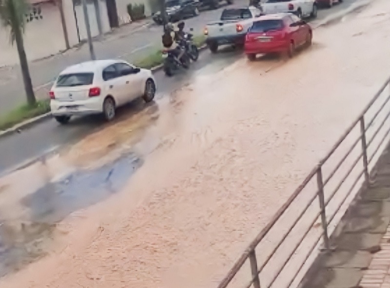 Adutora rompe na Avenida Ceará e dificulta tráfego de veículos na tarde desta quinta-feira
