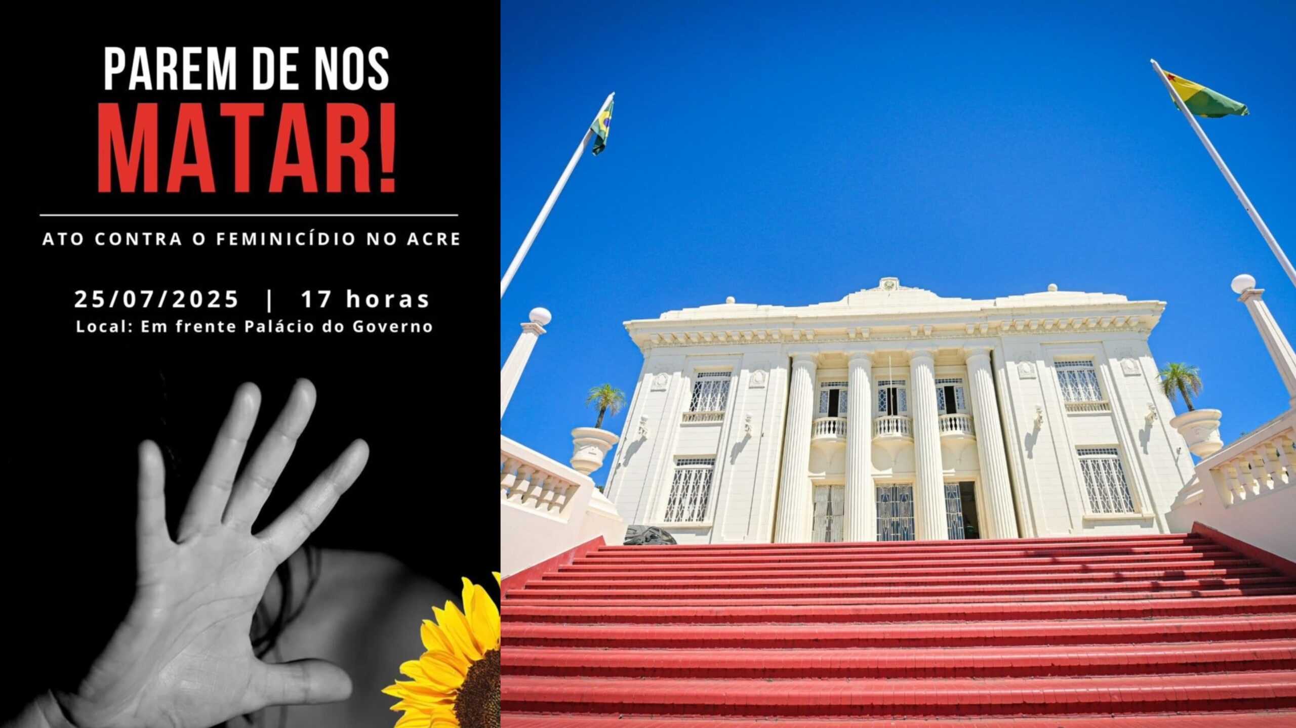 Será realizado um ato público contra o feminicídio em frente ao Palácio Rio Branco, em Rio Branco, nesta sexta-feira (25), às 17h. A mobilização é organizada pelo Comitê de Mobilização Contra o Feminicídio no Acre e cobra respostas do poder público diante dos cinco casos registrados no estado somente em 2025.