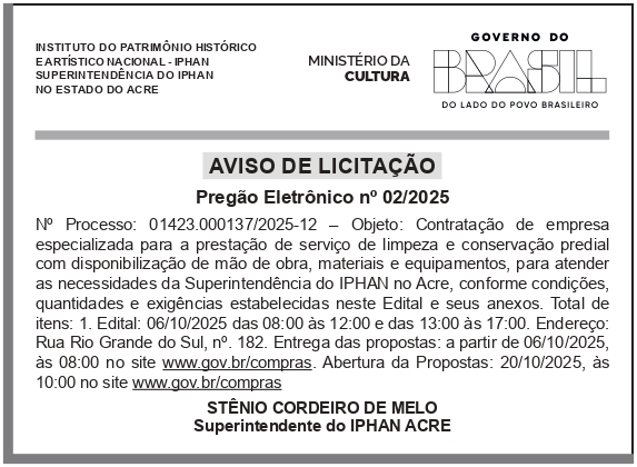 • Aviso de Suspensão Concorrência Nº 006/2025 Senac-DR/AC 2 de fevereiro de 2026