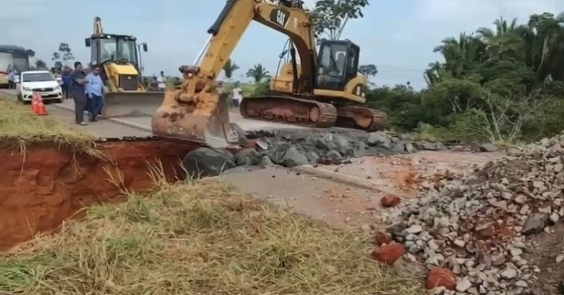 O Departamento Nacional de Infraestrutura de Transportes (DNIT), estava trabalhando para liberar o tráfego de veículos desde a segunda-feira (20). Em vídeo divulgado nas redes sociais, é possível ver a equipe do DNIT utilizando máquinas pesadas que colocavam pedras na cratera formada para que fosse possível o tráfego de veículos.