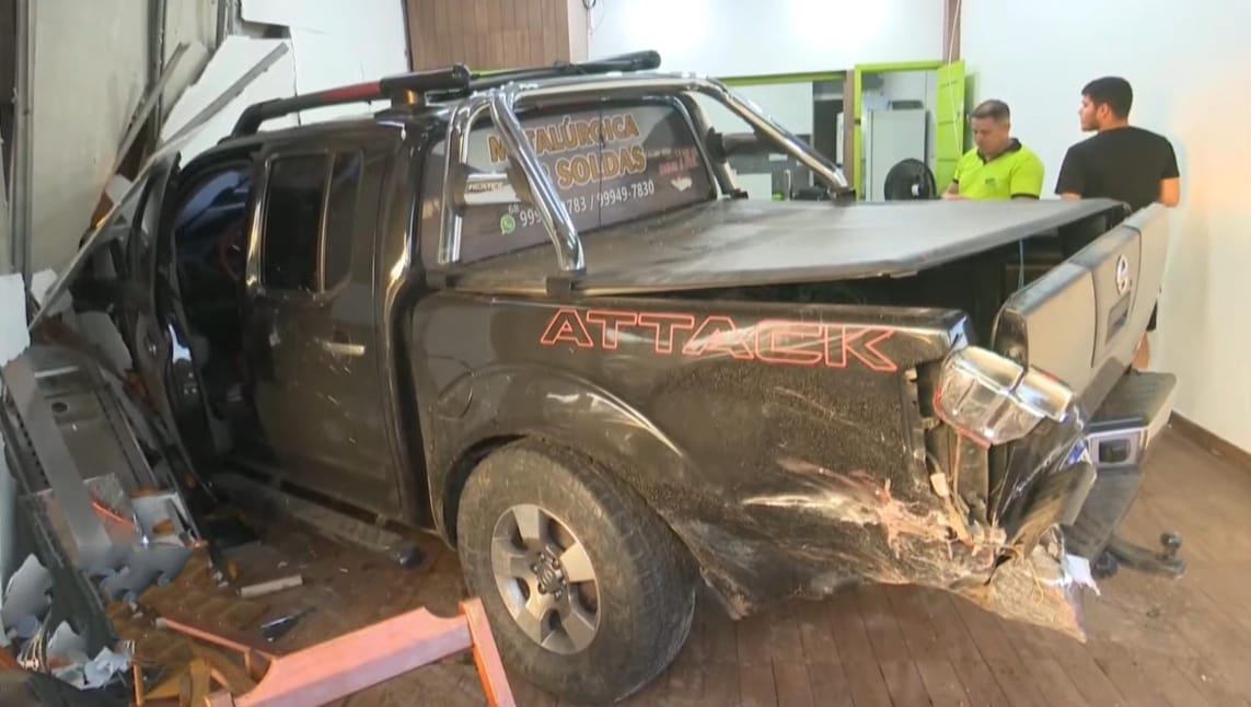 Segundo informações repassadas à PRF por testemunhas, o condutor da caminhonete relatou que o acelerador travou, impedindo que ele conseguisse frear. O veículo vinha no sentido Parque Ipê–Centro quando bateu inicialmente em um carro vermelho próximo à rotatória. Em seguida, o condutor ainda conseguiu completar a curva, mas colidiu com outros dois carros, antes de invadir duas lojas localizadas na avenida.