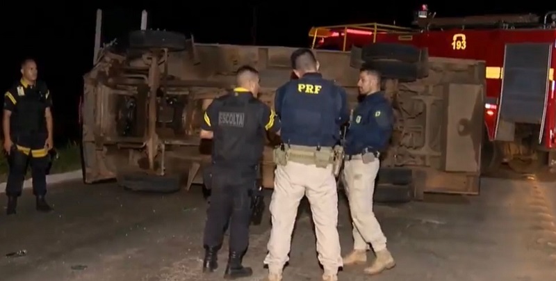 O veículo da VIP teria virado devido a um terceiro carro envolvido, que teria feito uma manobra na frente do carro forte, algo que fez o motorista frear de forma brusca e acabou tombando.