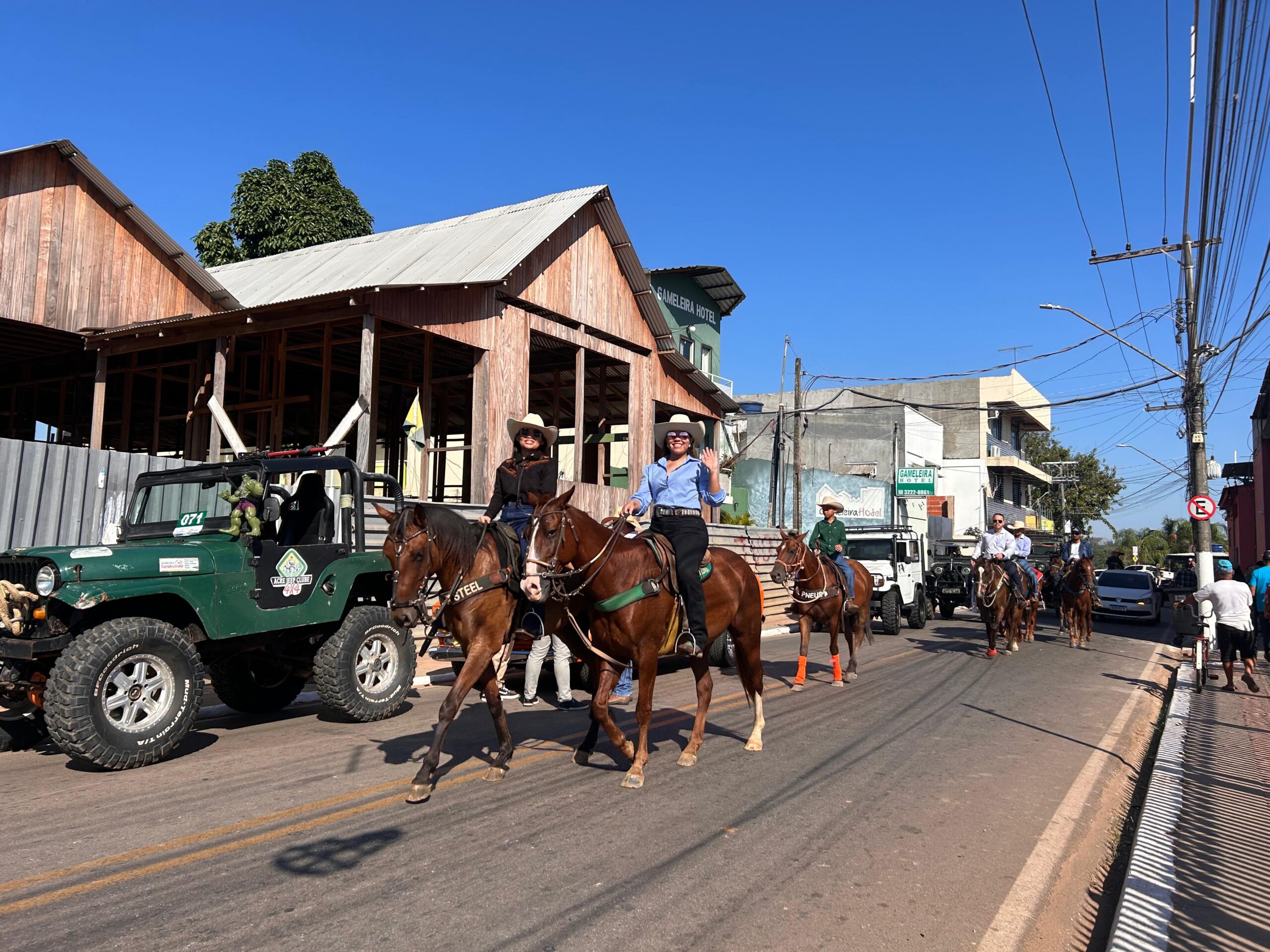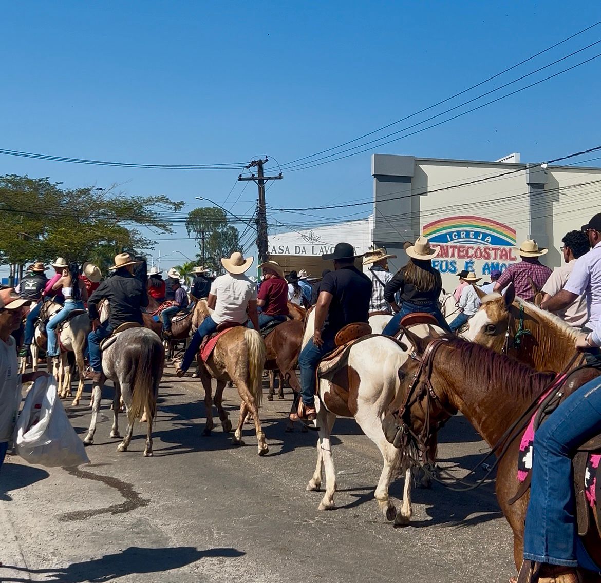 A concentração começou às 7h, e a saída oficial ocorre às 8h, com encerramento previsto para as 13h. O percurso passa por pontos tradicionais como o cartório, Sabenauto, Arasuper e Corrente, até a chegada no parque de exposições. A organização dividiu os locais de partida conforme os tipos de participantes: os cavalos saíram pela Rua da Tentamen, quadriciclos pela Escola Maria Angélica, enquanto os trios elétricos e carros de som se organizaram em outro ponto estratégico, pensando na segurança do público no trajeto.