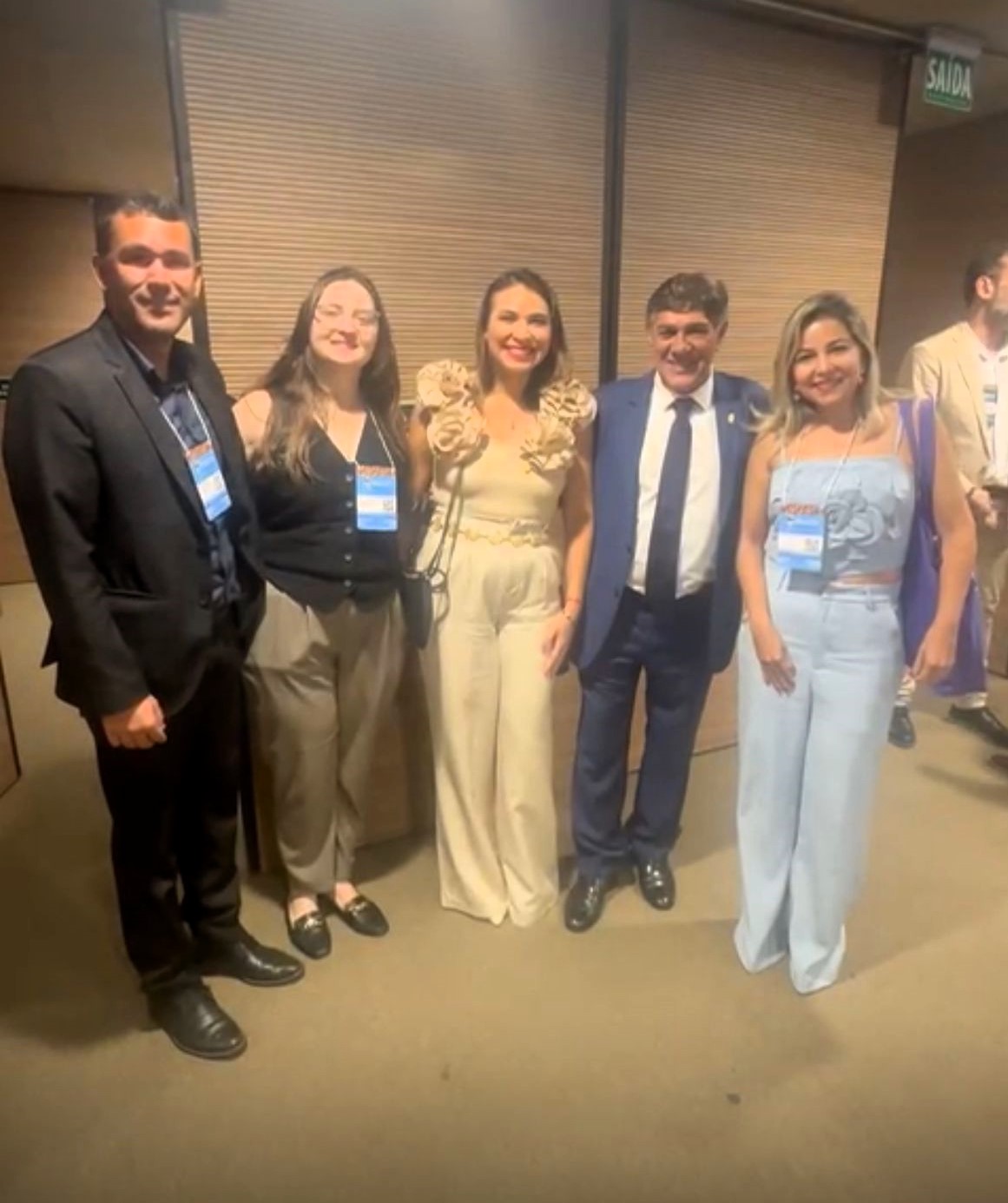 O Secretário de Estado de Indústria, Ciência e Tecnologia, Assurbanípal de Mesquita, Guilheny Abramamoski Miss Acre e a coordenadora local do Miss Grand Acre 2025, Meyre Manaus.