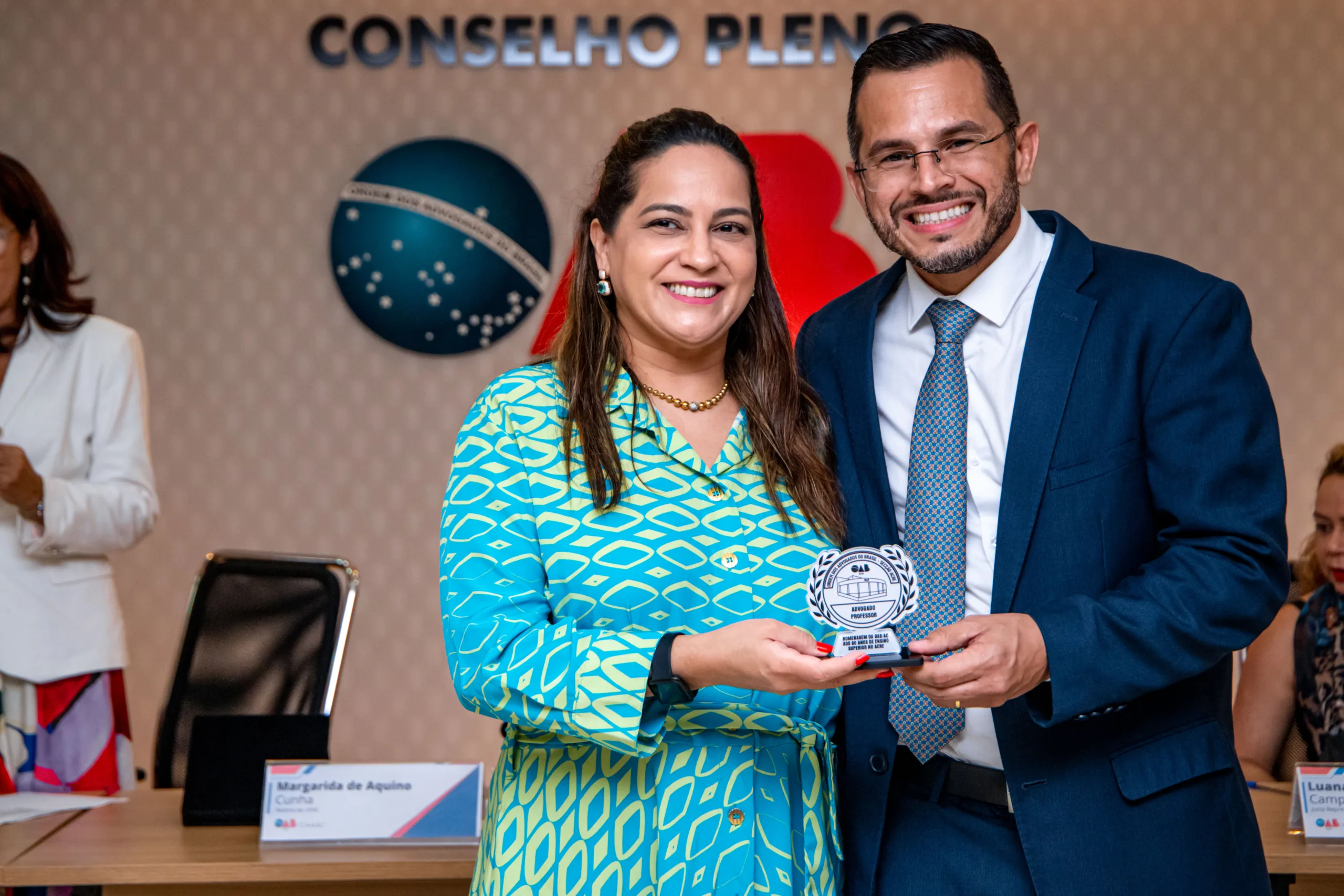 Simone Chaves, representando a professora doutora Silvane Chaves recebeu das mãos do presidente da OAB, Rodrigo Aiache