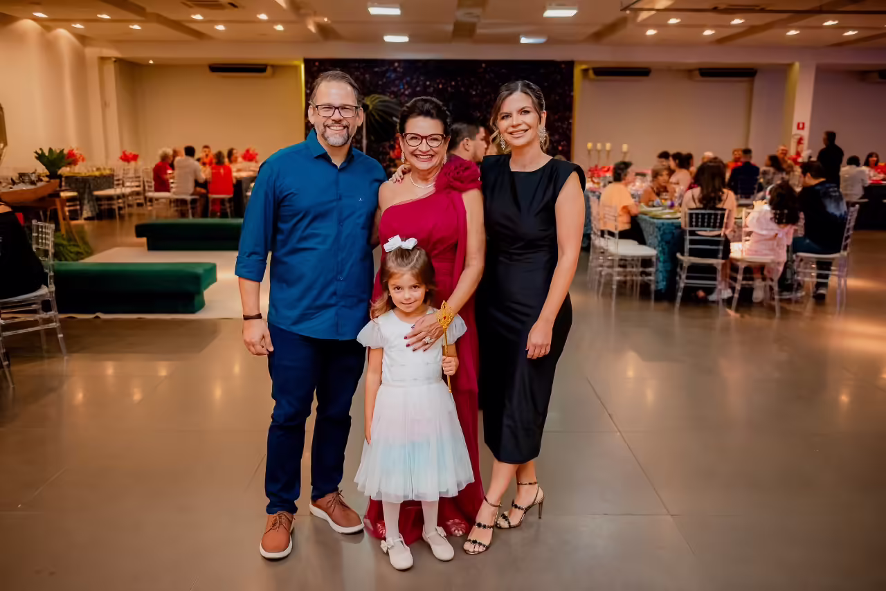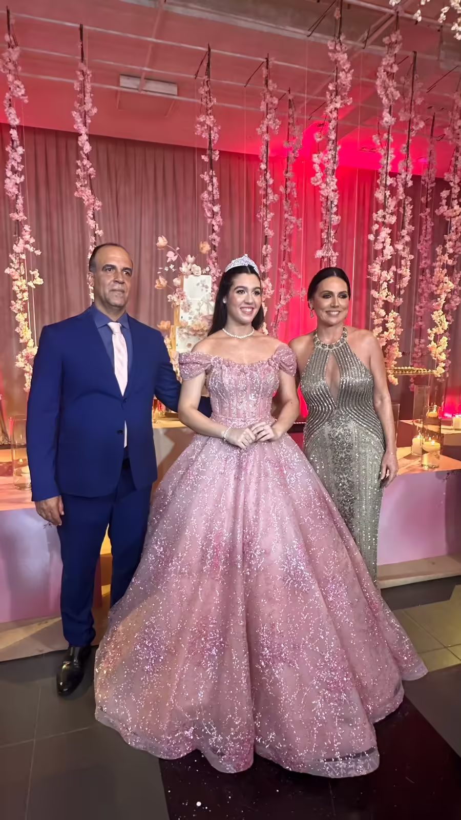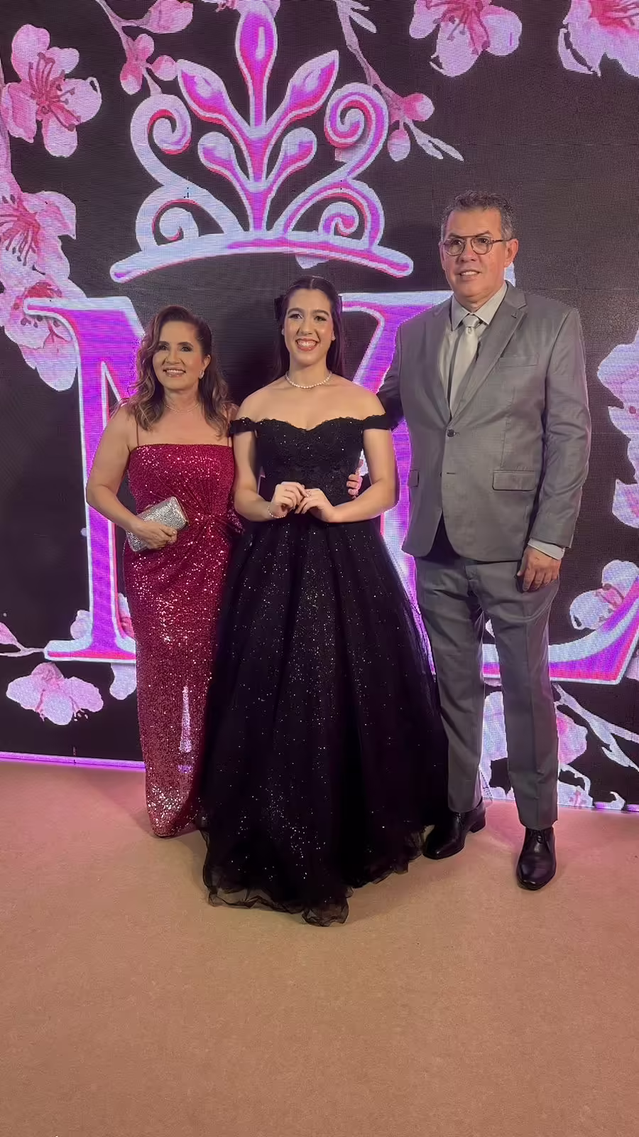 Uma linda festa, adorável, emocionante e divertida, foi realizada sábado, dia 17 de junho, para a comemoração do aniversário de 15 anos de Maria Luísa Florêncio, filha do pecuarista Luís Antônio e da advogada Dani Florêncio. Tudo começou às 20h, com a chegada dos convidados, recebidos com todo carinho pela própria aniversariante, no Afa Jardim. Maria Luísa teve uma festa de princesa decorada nos tons de rosa, preto e prata e usou três looks: um vestido longo, digno de realeza, para receber seus convidados, um para dançar a valsa e um curtinho para a dança com amigas. Com grande maestria a mãe da aniversariante Dani Florêncio e Elaine Rodrigues que criaram uma atmosfera digna de realeza, enquanto as cores adicionam um toque contemporâneo e ousado com as mesas decoradas com louças finas e personalizadas da cerâmica Luiz Salvador. Mas a magia foi além do tradicional. Projeções de luzes e som, assinado pela Life Show Acre, dançavam no teto e paredes, criando cenários virtuais e com os efeitos especiais da Nova Efeitos Visuais, nos transportavam para outros mundos, enquanto o drone capturava cada sorriso e emoção, eternizando momentos em ângulos impossíveis. A organização ficou a cargo da cerimonialista Lina Grasiela da Lótus Cerimonial, que garantiu que todos os detalhes planejados fossem executados, para que Maria Luísa tivesse as melhores recordações de sua festa. Na pista de dança, após a dança com o pai. A mãe da aniversariante Dani emocionou a todos com suas palavras, expressando todo o seu amor, homenagem das amigas, dança com as amigas, e no telão a projeção de um lindo vídeo, uma atmosfera animada tomou conta do local até altas horas.