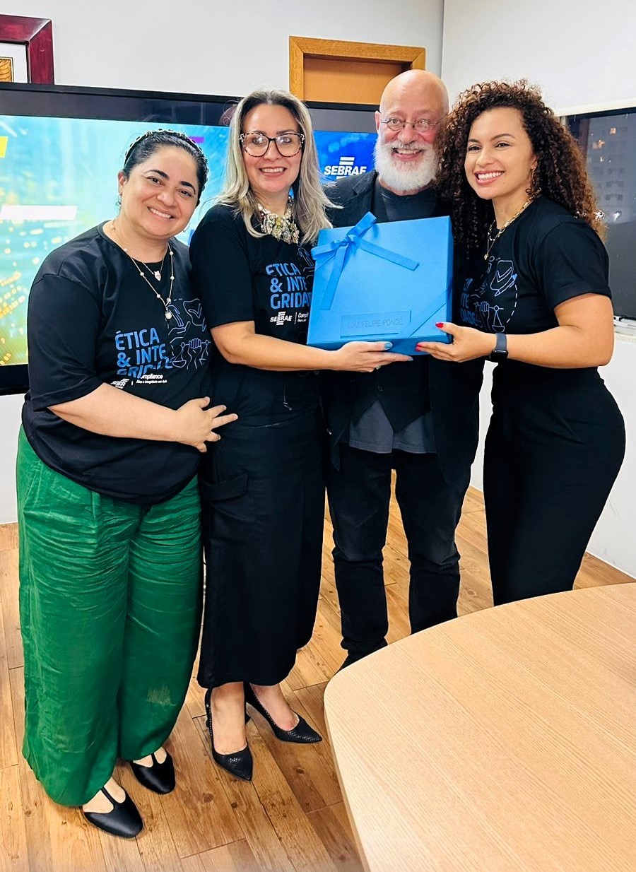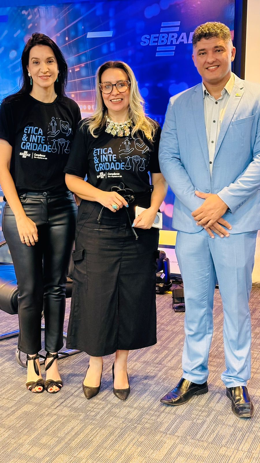 A assessora de Controle, Processos e Compliance do Sebrae no Acre, Adriana Souza com Vanessa Igami (da Liderança Afetiva) e Osmar Nilo, Superintendente da Controladoria Regional da União no Acre.