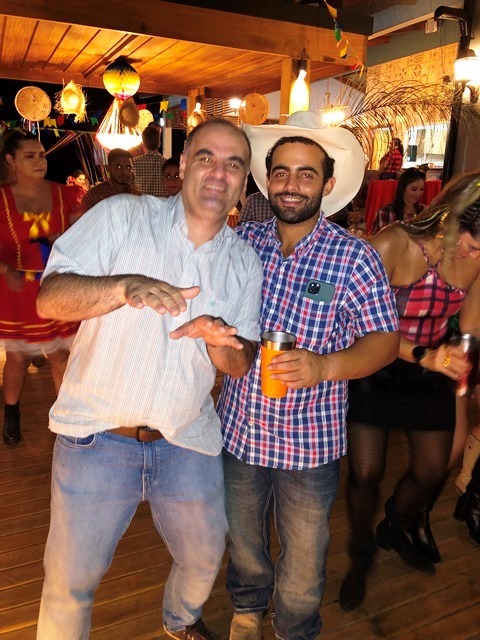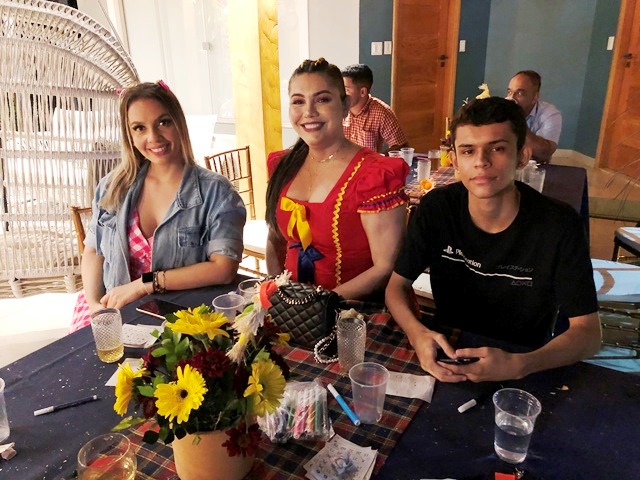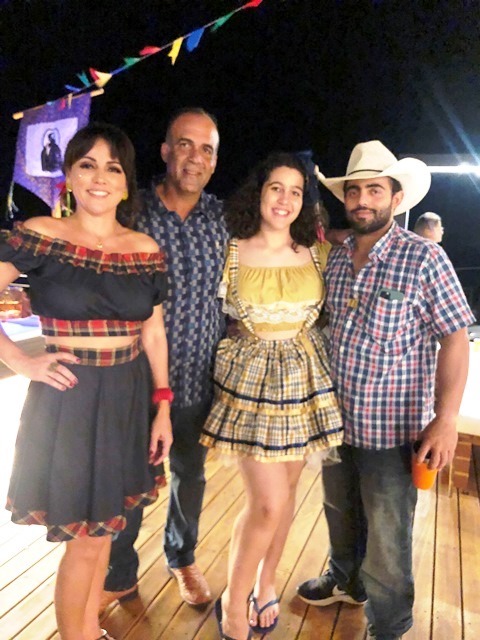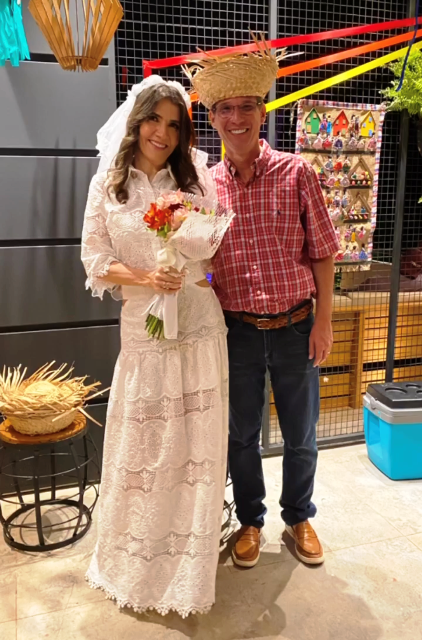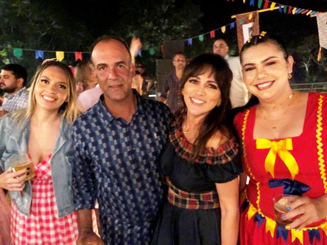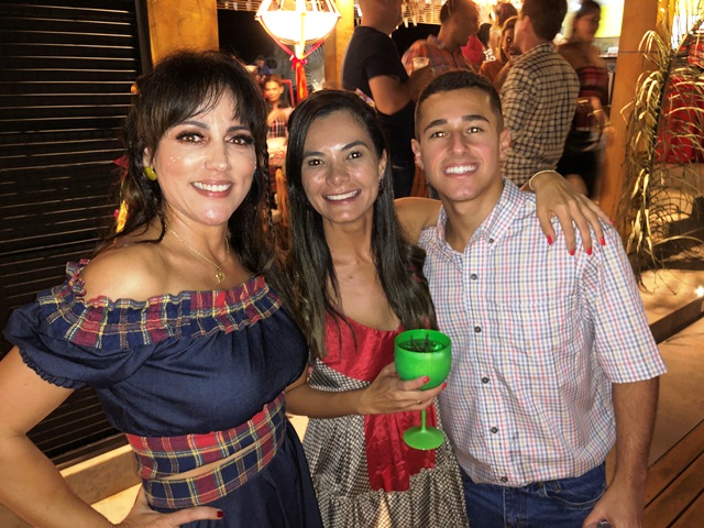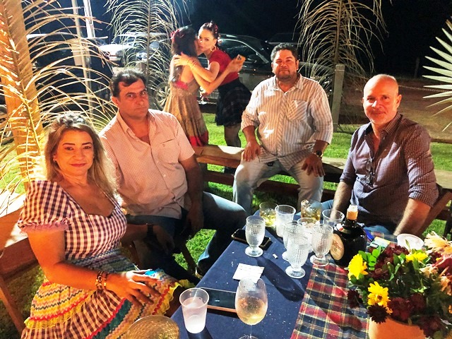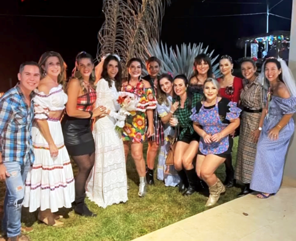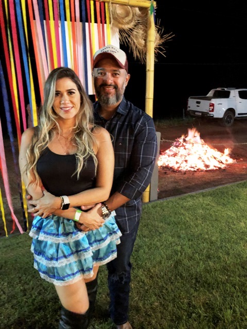 O casal de pecuarista Dani Florêncio e Luís Antônio recebeu os amigos em sua belíssima fazenda em Capixaba, na noite do sábado, 25 de junho para comemorarem em grande estilo o dia de São João, com um arraial pra lá de animado entre amigos. O local recebeu decoração junina especial, elaborara pela anfitriã que capricha em todos os detalhes e é conhecida por receber super bem seus convidados. Na entrada, foi montada uma linda e gigante fogueira e em seguida os convidados adentravam na festa através de um portal de fitinhas coloridas. As comidas estavam dos deuses, tudo maravilho. Para animar a noite, muito forró e sertanejo, uma noite hiper animada que deixou os presentes com um gostinho de “quero mais”. A noite contou com rodadas de bingo e quadrilha. Marcaram presença:
