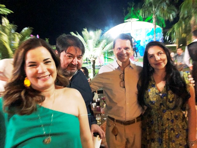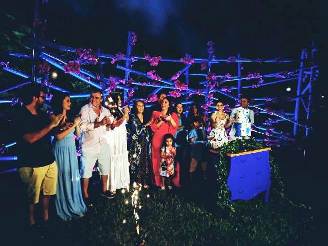 A empresária Sandra Ruiz é conhecida na sociedade pelas belíssimas festas que organiza e seu aniversário não poderia ser diferente. Ela reuniu familiares e amigos no sábado, 25 de junho para comemorar em grande estilo e com todas as pompas seus 50 anos de vida com uma sunset em sua Chácara Modelo. Amizade, sorrisos e uma energia incrível foram os ingredientes da noite. O menu foi assinado pela expert Sylvia Montenegro que agradou a todos os paladares, o bar montado no centro da festa foi disputadíssimo e fez a alegria dos convidados com variados drinks com álcool e sem álcool e, para animara a festa, 03 bandas tocaram até altas horas. A aniversariante recebeu os convidados no coreto que foi todo decorado com balões azuis, um espetáculo, na sequência vinha um lindo gazebo azul com orquídeas lilás, um luxo, um maravilhoso bolo de 2 andares e a belíissima árvore com inúmeras mandalas de olhos grego. Tudo perfeito!! No convite, ela pediu para os convidados fazerem do presente, uma doação de qualquer quantia em dinheiro para ser doado ao Banco de Cadeiras de Rodas do Rotary Club de Senador Guiomard, seus convidados ficaram felizes em poder  contribuir para essa linda ação. Sandra está sempre se superando como anfitriã. Cliques da memorável noite: