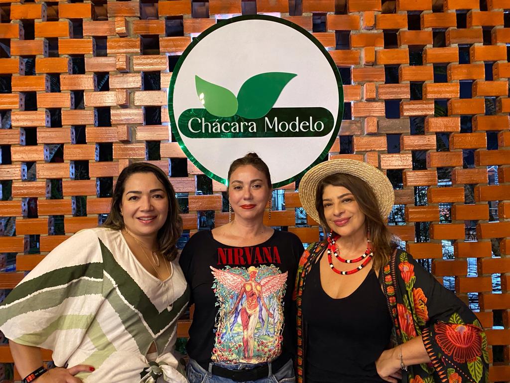 A empresária Sandra Ruiz, uma das responsáveis pelo sucesso do evento, comigo e Giuliana Evangelista