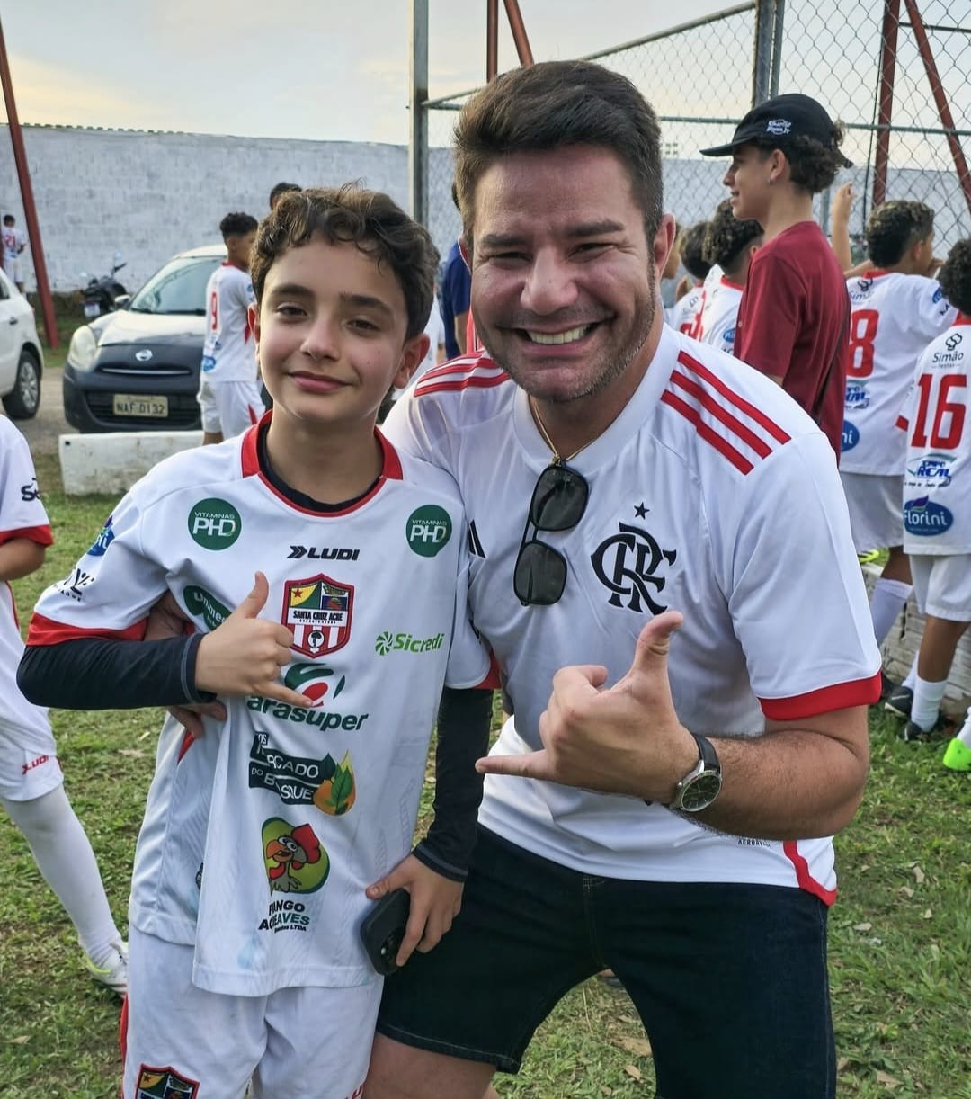 O sempre simpático, atencioso e querido governador do Acre, Gladson Cameli, no seu momento PAIZÃO, com o seu filho, o príncipe Gui. Na reinauguração do estádio Arena da Floresta
