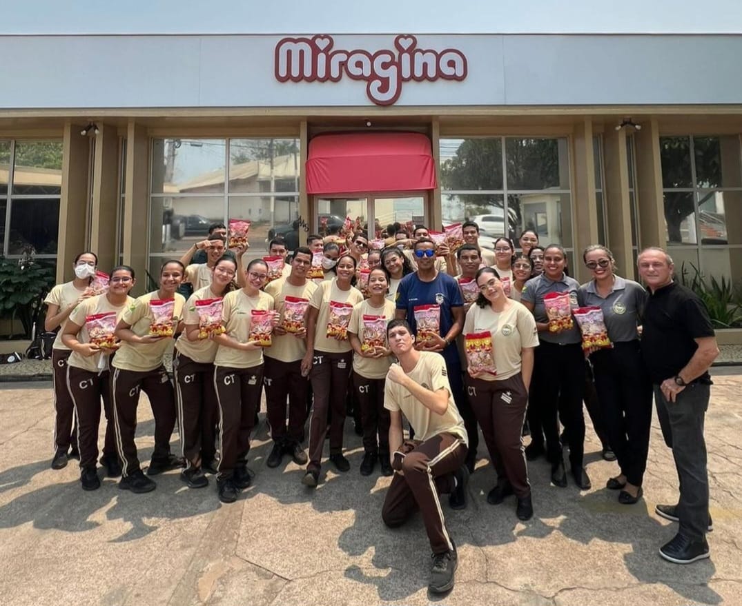 MIRAGINA – Os alunos do Colégio Militar Estadual Tiradentes, visitaram a empresa, indústria Miragina. Na pauta: as indústrias que movimentam a economia local. O presidente da empresa acompanhou mostrando todas as instalações com palestra multinacional. Aplausos 👏