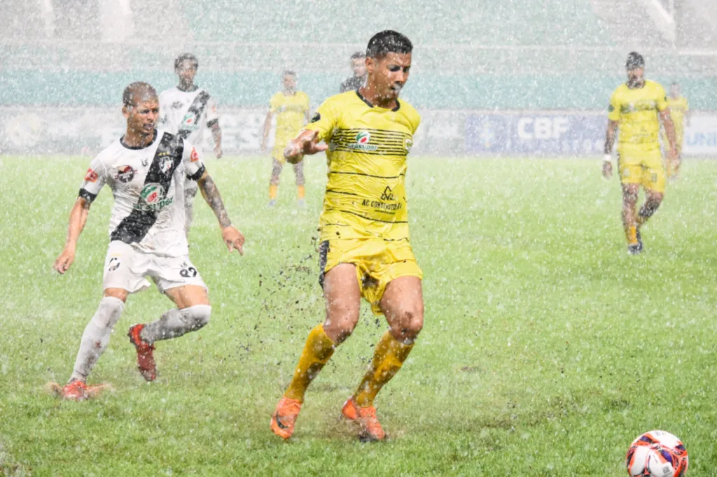 A partida entre Vasco-AC e Adesg, que fechava a segunda rodada no sábado (24), foi interrompida aos sete minutos do segundo tempo por causa das fortes chuvas que deixaram o gramado da Arena da Floresta em condições impraticáveis.
