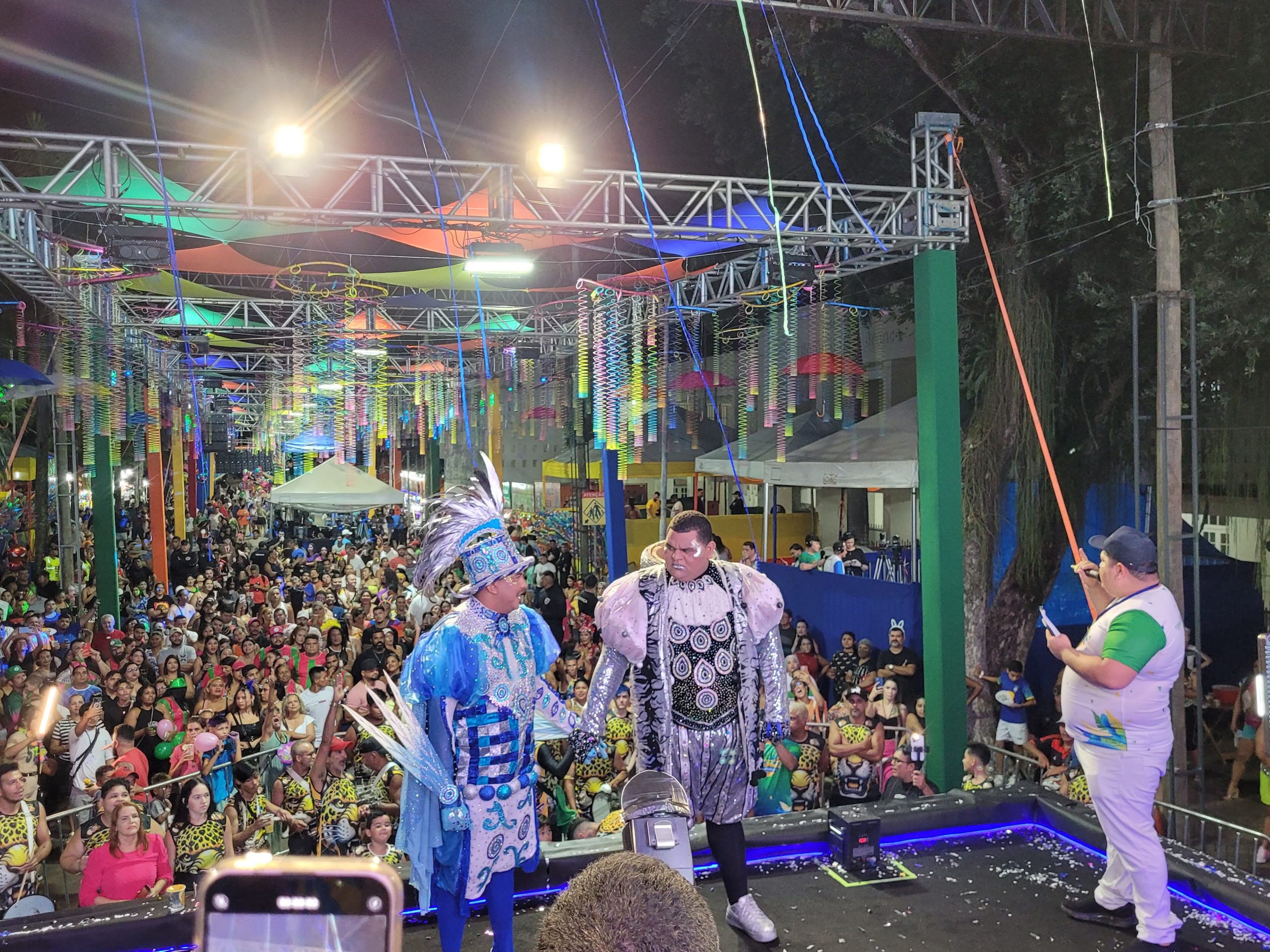 A coroa continua com ele! Júnior de Mônaco se consagrou hexacampeão ao vencer, nesta sexta-feira (28), o concurso de Rei Momo do Carnaval da Família 2025, realizado na Passarela do Samba, em Rio Branco. Representando o bloco Unidos do Fuxico e a quadrilha junina Pega Pega, onde é vice-coordenador, o veterano do Carnaval brilhou com uma fantasia luxuosa, composta por mais de 20 mil pedras, que custou entre R$ 2.500 e R$ 3.000.