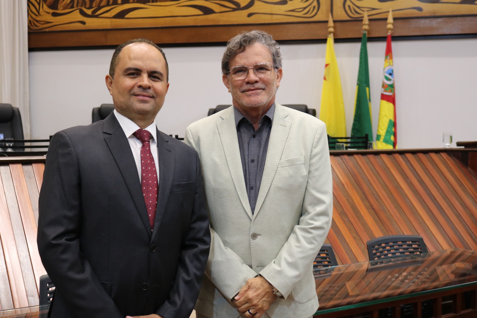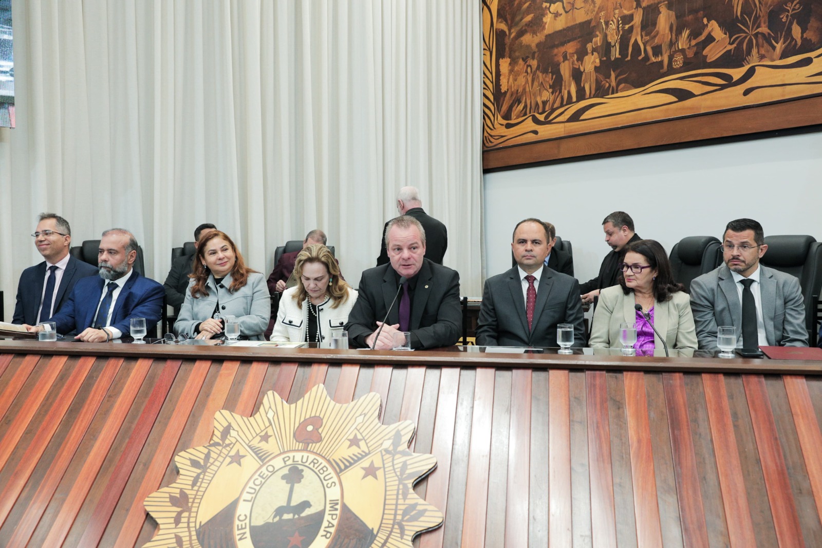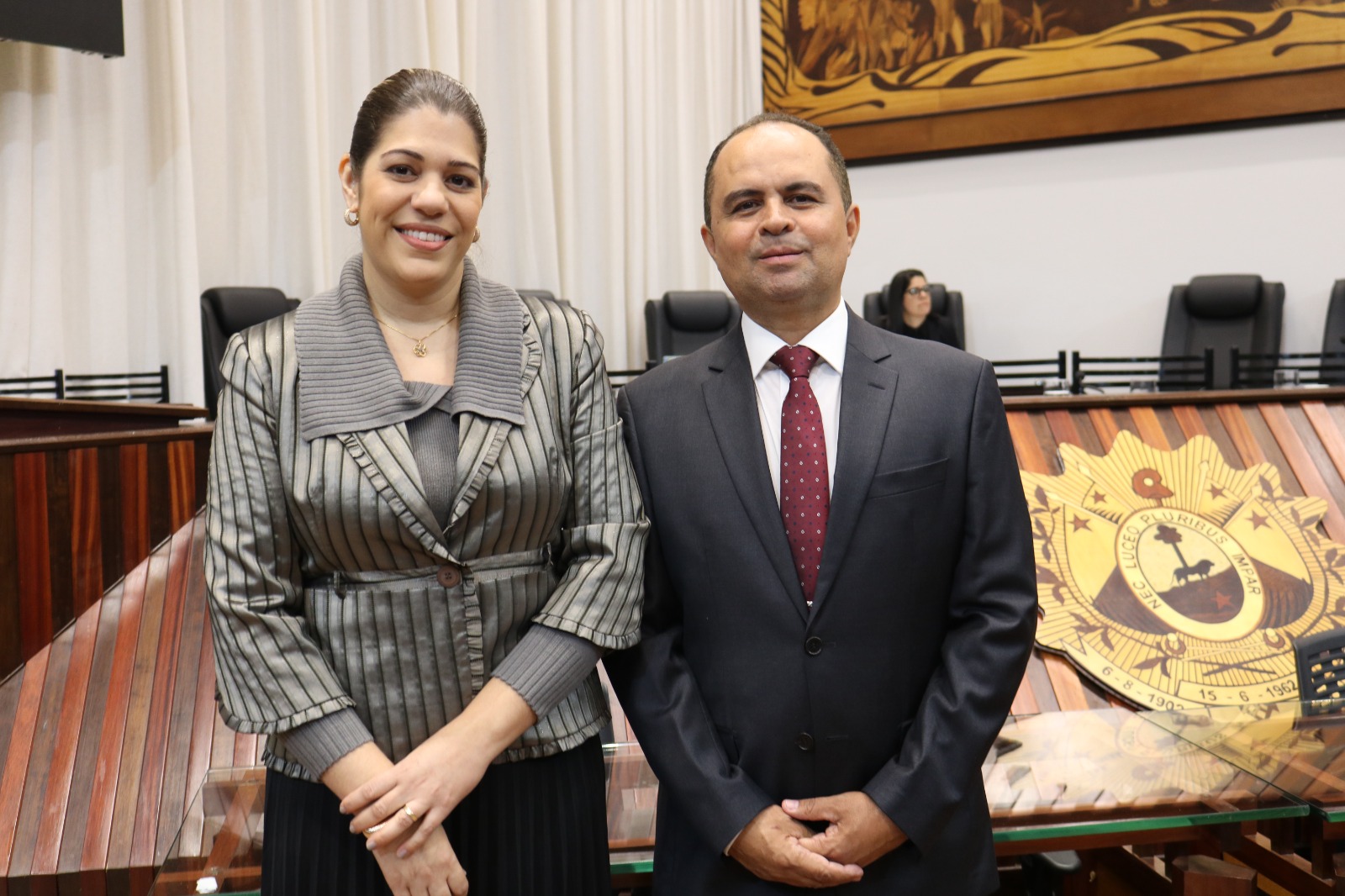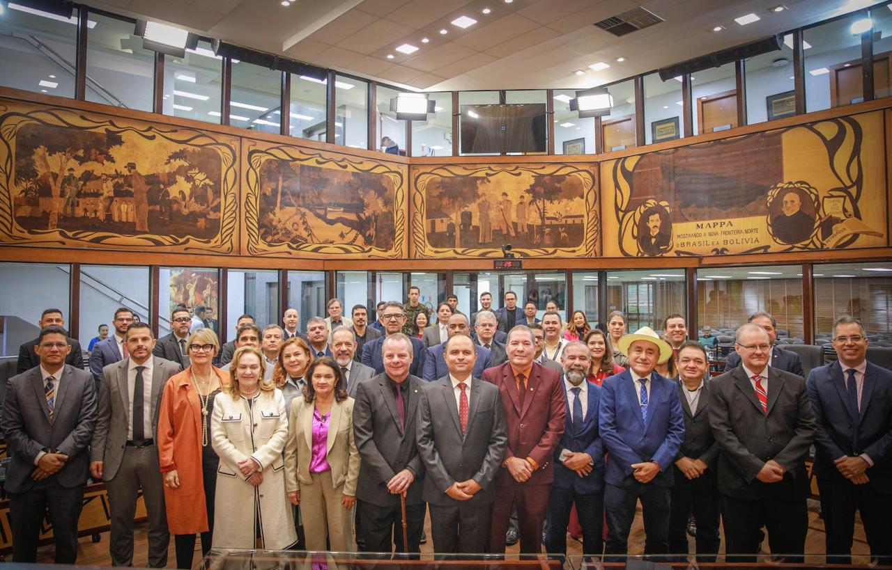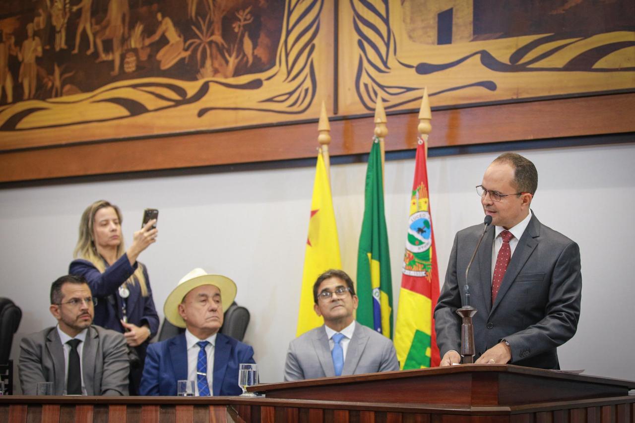 O Presidente em exercício da ALEAC, Deputado Estadual Pedro Longo, conduziu a cerimônia e destacou que o reconhecimento ao TRE-AC é um tributo justo à sua atuação histórica. “A sessão reconhece os serviços prestados ao povo acreano e a contribuição do TRE-AC para o fortalecimento da democracia, da cidadania e do processo eleitoral no Estado. Todos nós, deputados, passamos pelo crivo do TRE”, afirmou Longo, que também relembrou sua experiência como Juiz em três Zonas Eleitorais do Acre. Fotos assessoria ALEAC
