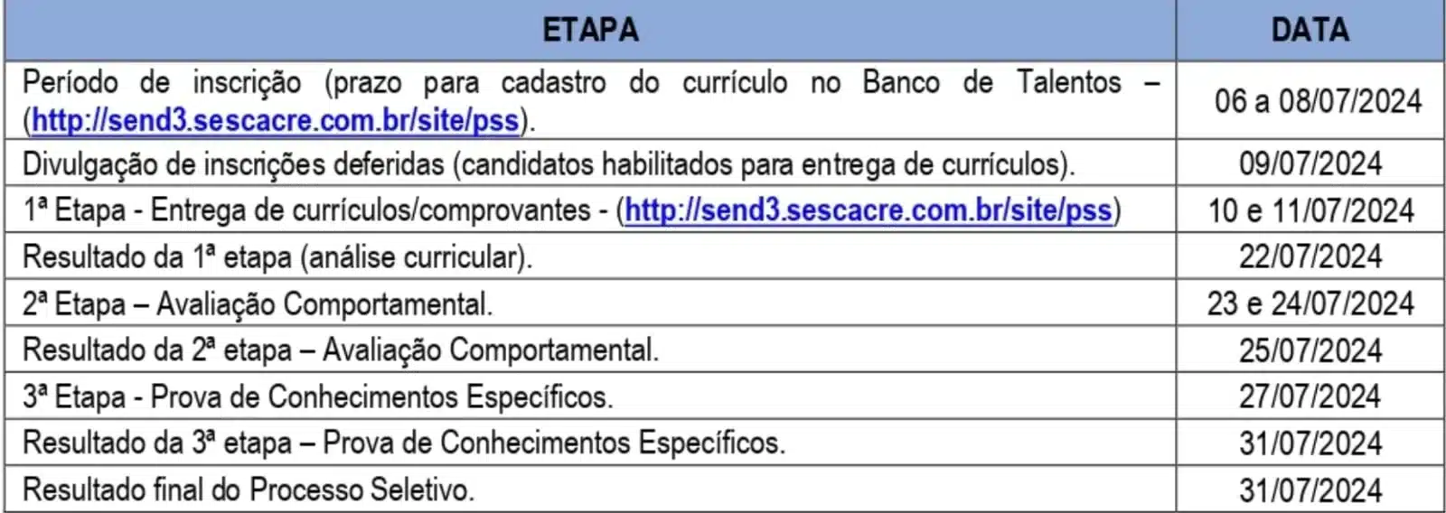 Comunicado de processo seletivo Cruzeiro do Sul n°002/2024 Sesc-DR/AC