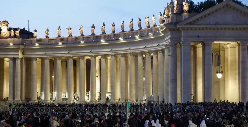 Cerca de 15 mil pessoas se reúnem na Praça de São Pedro à espera da fumaça branca que anunciará o novo líder da Igreja católica, que congrega 1,4 bilhão de membros.