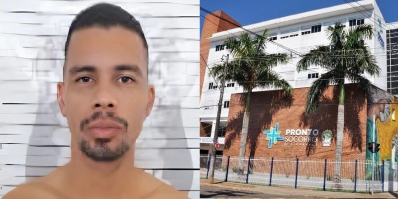 Alcinei Cunha de Oliveria, que foi levado ao Pronto-Socorro durante uma emergência, após atendimento, foi internado na ala psiquiátrica do hospital, onde não é permitido a permanência de policiais armados, que precisam ficar do lado de fora da ala, podendo entrar algumas vezes para vistoriar o preso.