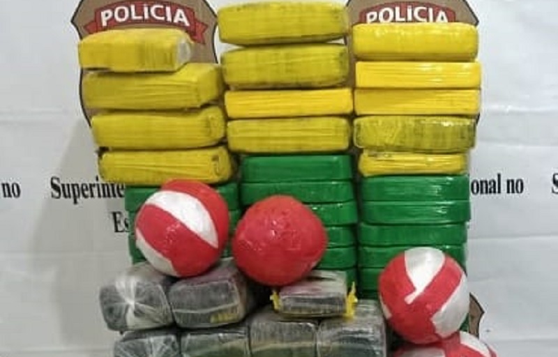 Os policiais realizavam policiamento pelos rios da região, quando observaram dois homens conduzindo uma embarcação de alumínio, que passaram a agir de modo suspeito. Durante a abordagem, a equipe encontrou 44 quilos de cocaína e mais de 25 quilos de maconha, escondidos dentro dos bancos da embarcação.