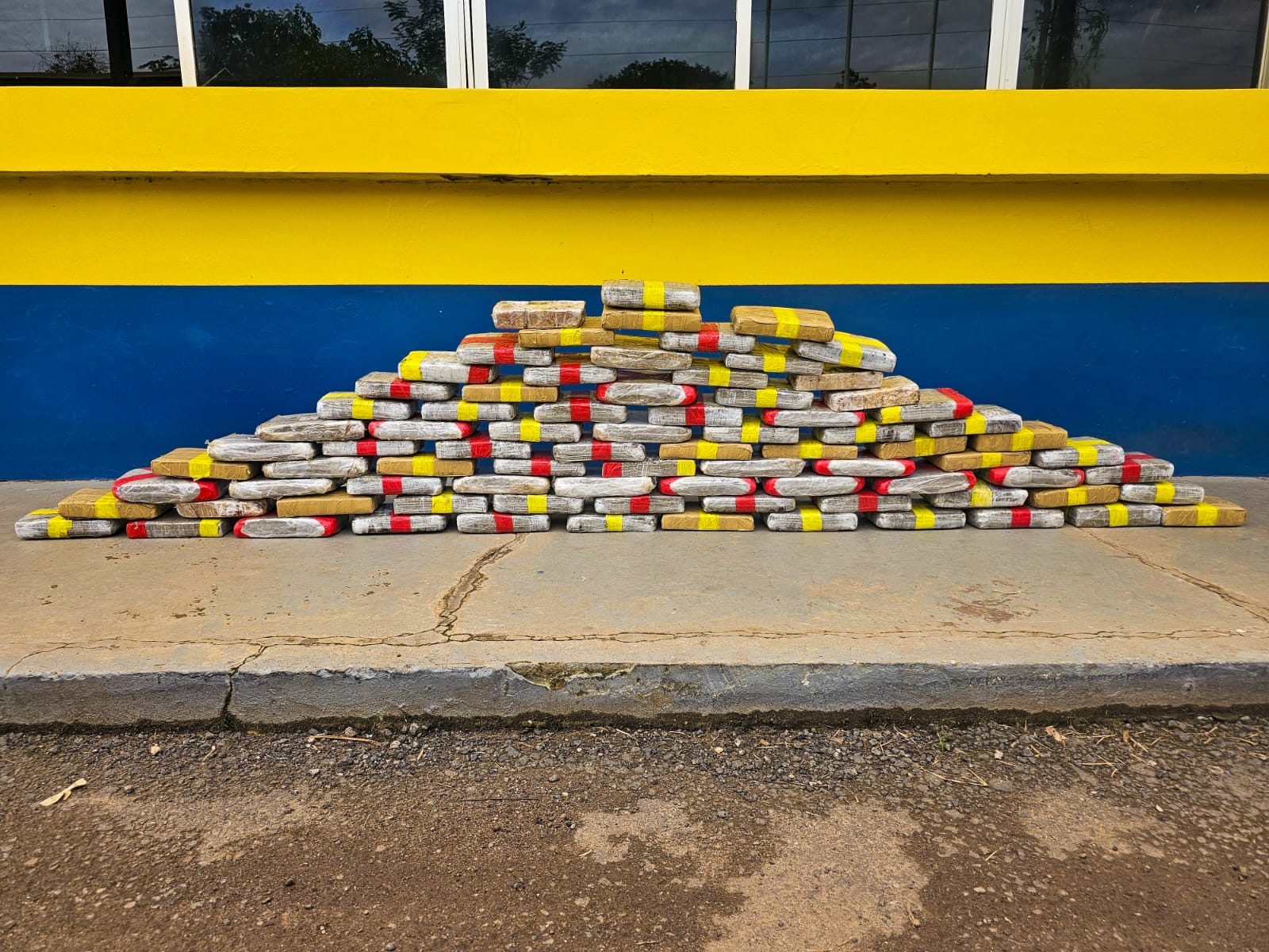 Durante abordagem a um veículo de passeio, os agentes identificaram grande quantidade de substâncias ilícitas no porta-malas, distribuídas em mochilas e sacolas. Após verificação, constatou-se que havia aproximadamente 4,6 kg de pasta base de cocaína e 80,5 kg de skunk (super-maconha), totalizando cerca de 85 quilos de entorpecentes.