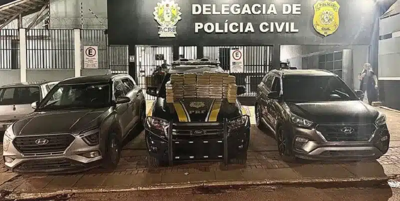 A primeira ocorrência foi registrada nessa terça (30), no Km 65 da BR 364, em Senador Guiomard/AC, por volta das 19h30, quando a equipe da PRF, com o apoio da Polícia Militar, abordou 02 (dois) veículos. Ao realizar a fiscalização, verificou-se um desencontro de informações. Posteriormente foram encontrados 61 kg de Skunk e 7 trouxas de cocaína. Durante entrevista foi confirmado que os veículos estavam juntos, sendo dada voz de prisão para todos os envolvidos.