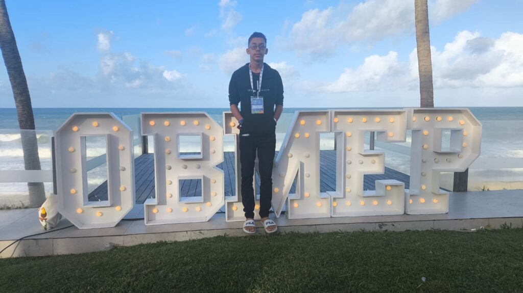 João Gabriel foi escolhido por seu histórico de premiações na OBMEP. “Participei da olimpíada três vezes: em 2022, 2023 e 2024. Na primeira, fui para a segunda fase, mas não fiz a prova. Nas últimas duas, ganhei uma medalha de ouro regional e uma prata nacional. Ao todo, são quatro medalhas: duas de ouro e duas de prata”, conta o estudante.