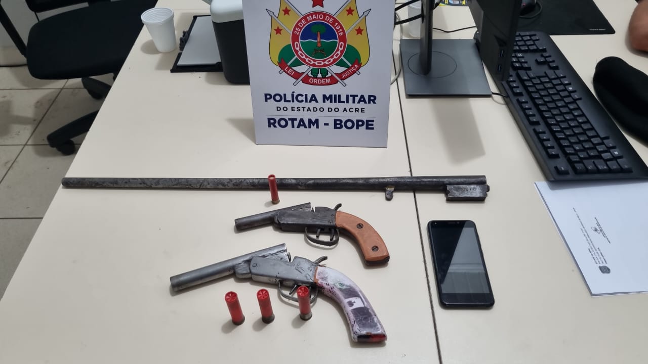 Uma ação conjunta das equipes do Batalhão de Policiamento Trânsito (Bptran), radiopatrulha da área do 2° Batalhão (2º BPM) e da Companhia de Rondas Ostensivas Tático Móveis (Rotam), integrantes da Polícia Militar do Acre (PMAC), resultou na recuperação de uma caminhonete, apreensão de duas armas de fogo e prisão de cinco suspeitos, na madrugada desta terça-feira, 1º de agosto, no bairro Recanto dos Buritis.
