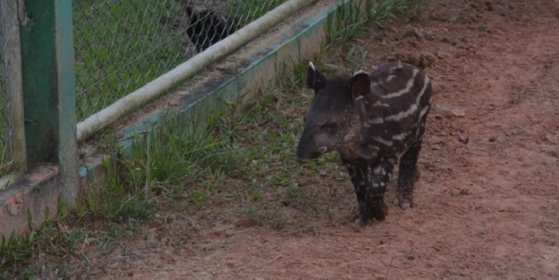Nascido no dia 22 de janeiro deste ano, no Parque Ambiental Chico Mendes, o filhotinho de anta parece não se importar em ficar longe da mãe Flor, do pai Bruno e do irmão mais velho, Bruno Júnior, que também nasceu no parque.