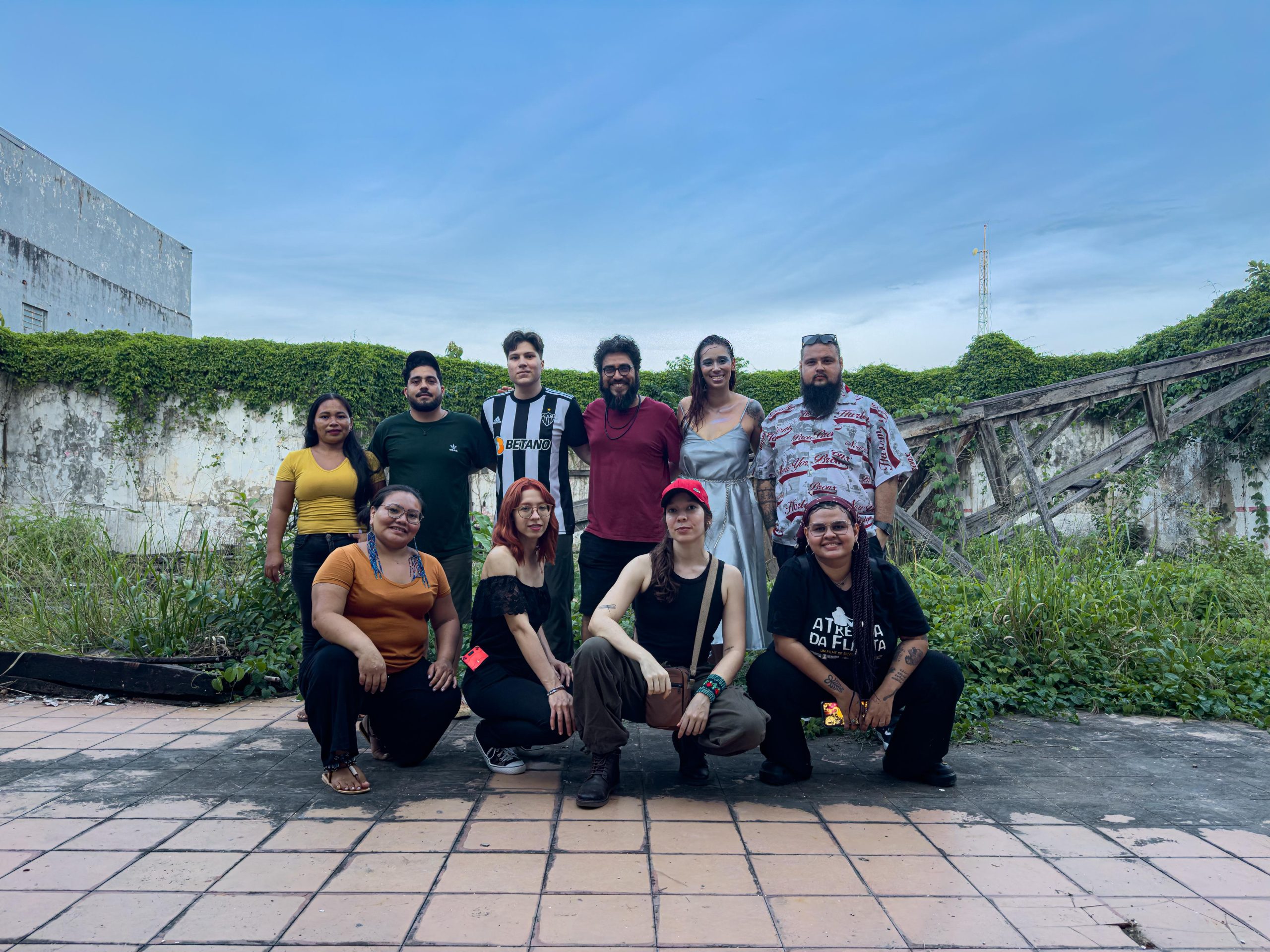 Filmado nas ruínas do Clube Rio Branco e no ateliê do artista Danilo de S’Acre, o filme conta com uma performance intensa da atriz Sacha Alencar. O projeto foi financiado pela Lei Paulo Gustavo e conta com o apoio da Fundação Garibaldi Brasil. Com uma atmosfera que mescla cinema experimental, artes visuais e música autoral, a Festa de Lançamento do Filme “Sob a Pele da Cidade” é um convite para quem deseja vivenciar uma experiência cultural autêntica e marcante. Na foto, a equipe de produção do filme.