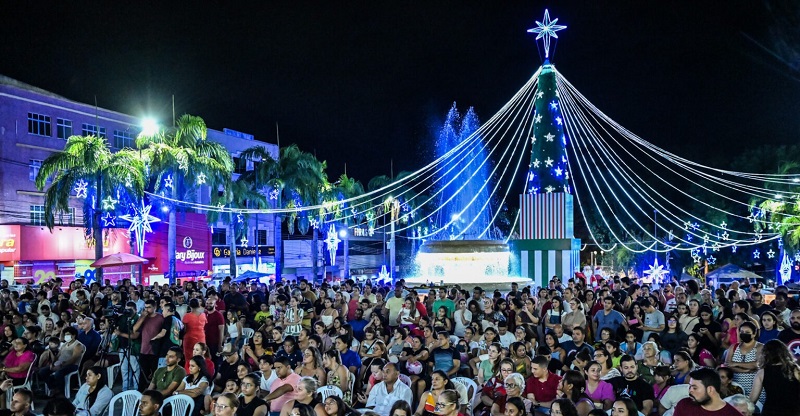 Música, luzes e espírito natalino marcaram a abertura oficial da programação do Natal 2023 do governo do Acre na noite desta sexta-feira, 1º, na esplanada do Palácio Rio Branco.