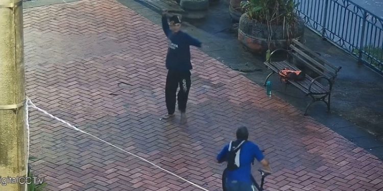 Em um vídeo feito por câmeras de segurança, é possível ver o acusado sentado em um banco público e, ao lado, uma mochila. Quando o ciclista se aproximou, o assaltante retirou uma espécie de faca da mochila e foi em direção à vítima, que rápido desceu da bicicleta e correu.