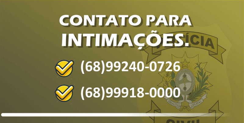 Para isso, foram divulgados dois números oficiais que serão utilizados exclusivamente para esse fim: (68) 99240-0726 e (68) 99918-0000. Por meio desses contatos, os cidadãos poderão receber diretamente em seus celulares as intimações, contendo informações detalhadas como data, horário, delegacia, endereço e o documento oficial assinado por um delegado de polícia.