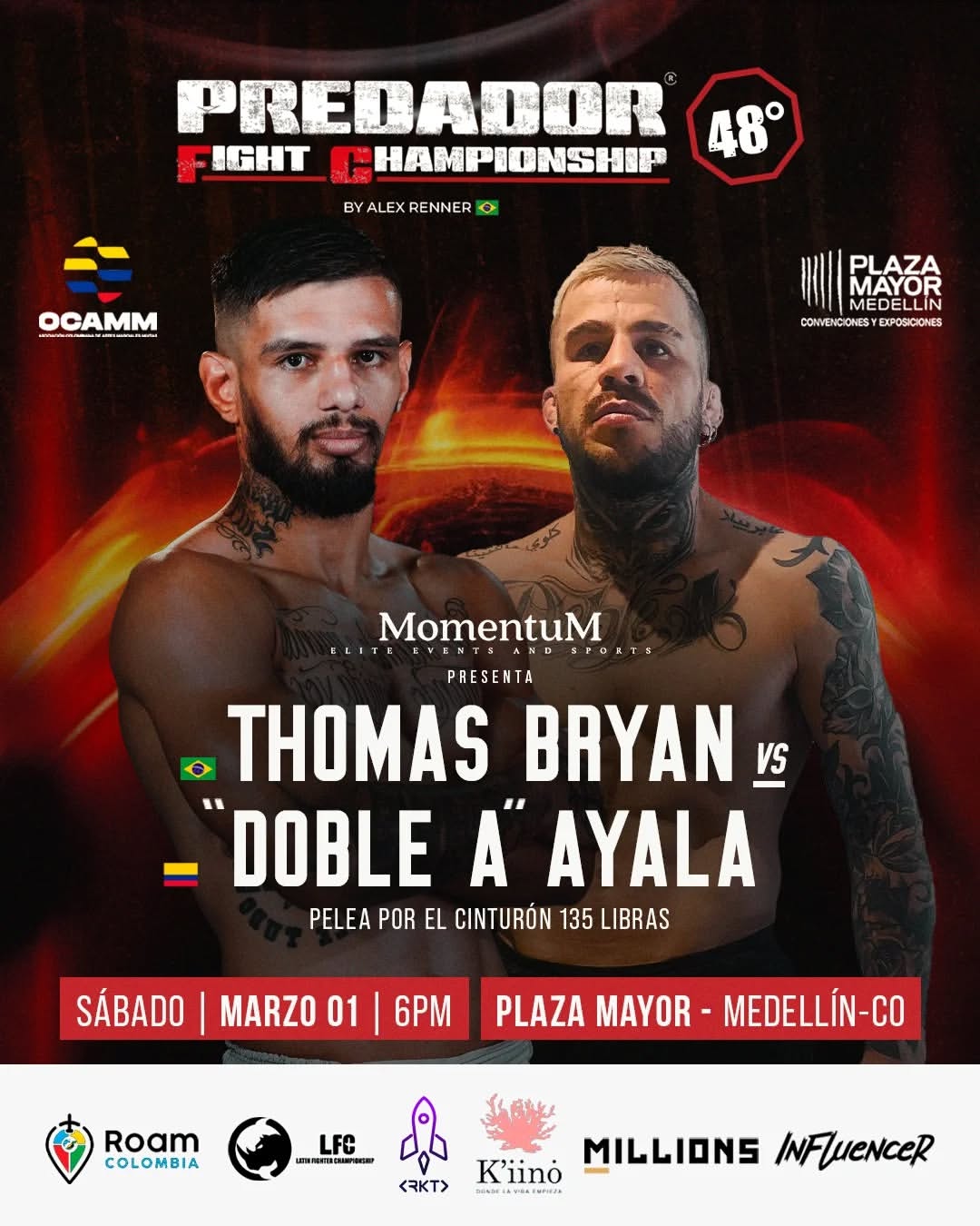 Após o duelo em Paris, Thomas Bryan volta ao octógono no dia 1º de março, em Medellín, Colômbia, para defender o cinturão do Predador Fight Championship (PFC). Ele enfrentará Andrés Leal Ayala, o “Doble A”, em um combate que promete ser um dos destaques do evento. Thomas conquistou o cinturão do PFC em 2024, no México, finalizando um adversário venezuelano no quarto round.
