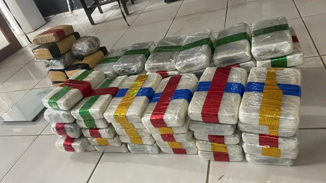 Ao verificar o conteúdo da sacola deixada para trás, os policiais encontraram embalagens que continham uma substância suspeita de ser maconha. Através da janela da casa, os agentes observaram diversas embalagens semelhantes, o que indicou a presença de um grande volume de entorpecentes no local. Após adentrarem a residência, os policiais localizaram mais de 70 “tijolos” de maconha, o que totalizou o peso de 79,5 quilos da substância ilícita.