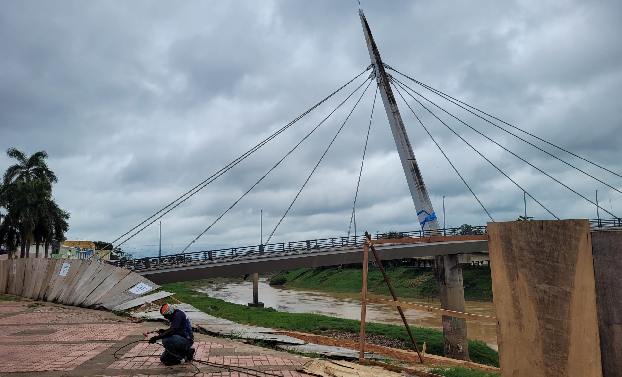 Agora para trabalhar o barranco vai ter que esperar o período de estiagem quando tudo estiver completamente seco. A direção do Deracre informou que nessa época do ano serão normais as movimentações do solo nessa região, mas a execução dos serviços não será alterada. A proposta agora é agilizar o levantamento das torres e antes de mais uma cheia do rio. Assim quando a água subir a passarela estará mais segura.