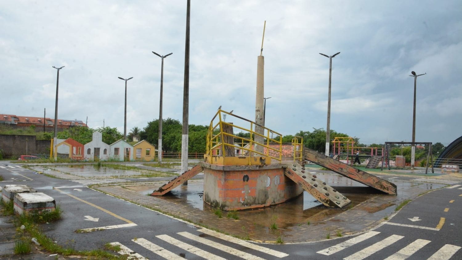Um dos exemplos mais emblemáticos é o Parque das Crianças, inaugurado em 2019, ainda na gestão passada. Desde então, segundo relatos de comerciantes e frequentadores, nenhuma ação efetiva de revitalização foi realizada, além do corte da grama. A estrutura encontra-se danificada, com brinquedos quebrados, pintura desgastada e riscos à integridade física das crianças que utilizam o espaço. “Já vi várias crianças se machucando aqui por conta do abandono. Não vem ninguém aqui fazer limpeza e está tudo à mercê”, denuncia um permissionário de quiosque no local, que atua há dois anos sem presenciar qualquer tipo de manutenção.