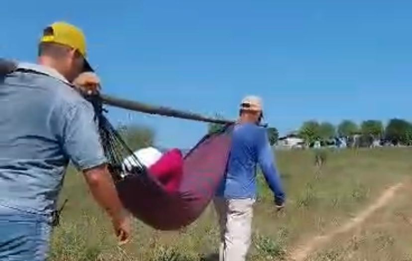 A Associação de Produtores do Projeto de Assentamento Oriente enviou um vídeo em que mulher era carregada pelos vizinhos em uma rede. Após seis horas de percurso, a ajuda só foi possível quando encontraram o ponto onde as caminhonetes conseguem chegar.