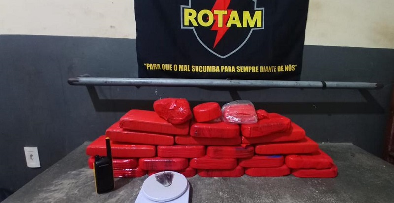 Os policiais encontraram dentro da residência mais de 6,5 kg de maconha e quase 16 kg de oxidado de cocaína, totalizando quase 23 kg de entorpecentes. A equipe também apreendeu no local um rádio comunicador, uma balança de precisão e um simulacro de arma de fogo, geralmente utilizado para a prática de roubos.