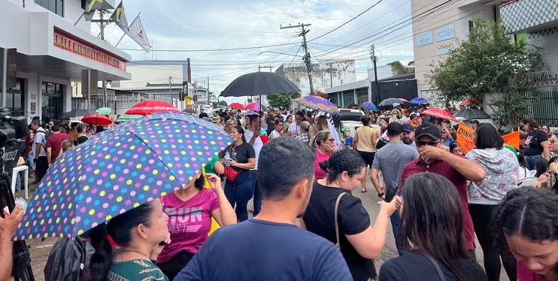 Após um protesto que bloqueou parte da rua Hugo Carneiro na manhã desta terça-feira (27), uma comissão de servidores do movimento grevista da educação de Rio Branco, foi recebida por vereadores na sala de reuniões da Câmara Municipal. A manifestação faz parte da paralisação iniciada no dia 15 de maio e teve como foco cobrar o apoio dos parlamentares para garantir a abertura de diálogo com a gestão municipal.