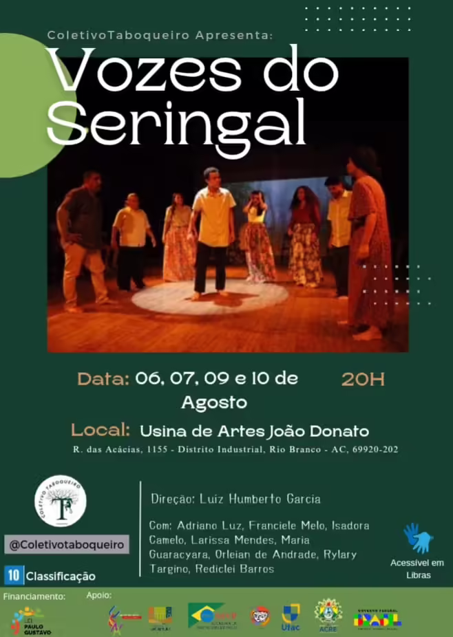 Nova temporada do espetáculo Vozes do Seringal, acontece nos dias 6, 7, 8, 9 e 10 de agosto, às 20h na Usina de Artes João Donato em Rio Branco, com entrada gratuita.