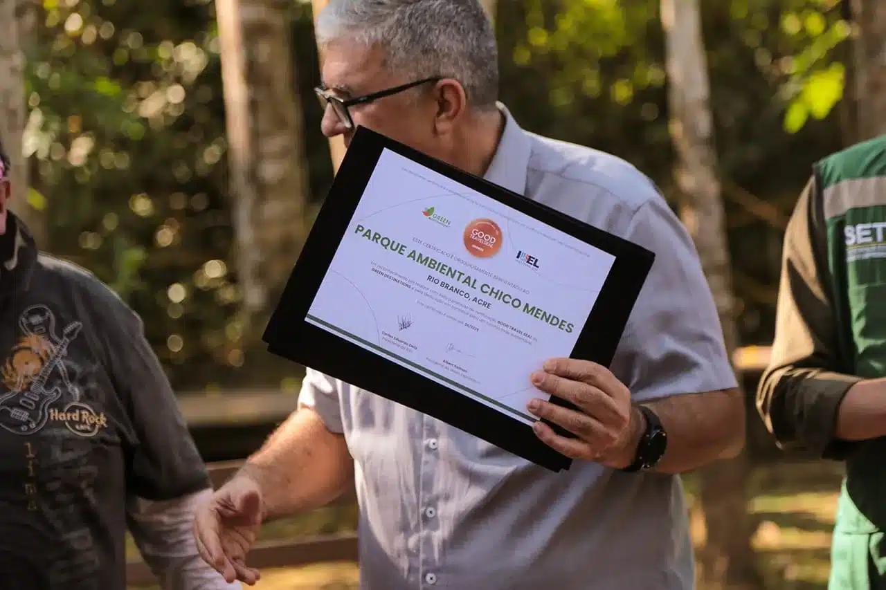 O Parque Ambiental Chico Mendes recebeu, na manhã desta quarta-feira (3), o selo Good Travel Destinations, uma certificação que reconhece o compromisso do parque com a gestão sustentável, responsabilidade social, saúde e bem-estar.