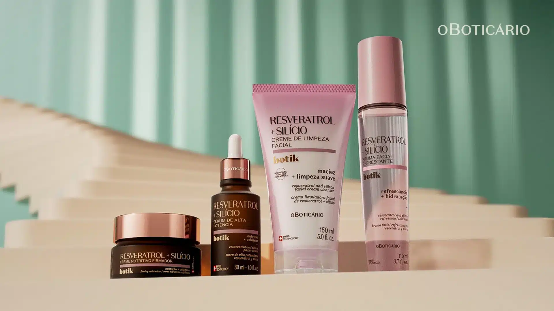 Garantindo eficácia e ativos de alta performance associados a exclusiva tecnologia suiça com o padrão-ouro da dermatologia, a linha apresenta quatro produtos: o destaque do lançamento é o Sérum de Alta Potência Botik Resveratrol e Silício, um superconcentrado que potencializa o colágeno da pele, aumenta a firmeza e devolve a sustentação, deixando-a mais macia e hidratada. Para uma prática de cuidados completa, a linha conta também com o Creme de Limpeza Facial Resveratrol e Silício, desenvolvido com uma fórmula capaz de limpar a pele suavemente, removendo impurezas sem ressecar. Já o Creme Nutritivo Firmador Resveratrol e Silício conta com ativos que proporcionam hidratação profunda para a pele, melhorando o ressecamento e fortalecendo a barreira cutânea. Sua fórmula promove uma recarga de nutrientes que aumenta a densidade, melhora a firmeza e reduz linhas finas. Com ação antioxidante, reduz os radicais livres e recupera a luminosidade natural da pele. Por fim, a Bruma Refrescante Resveratrol e Silício forma uma névoa suave sobre a pele, promovendo a sensação de refrescância imediata nos momentos de calor. A fórmula hidrata a pele do rosto e do corpo sem deixar sensação de repuxamento, pegajosidade ou interferir na maquiagem.