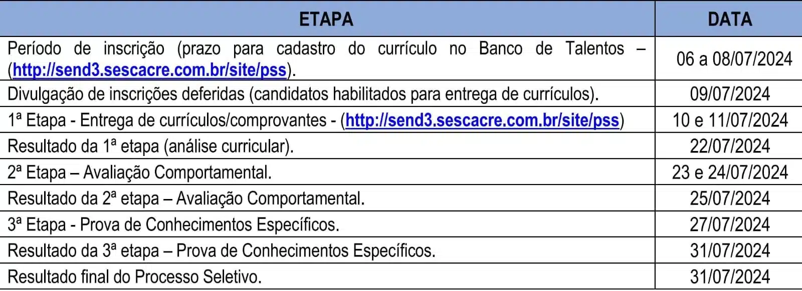 DR/AC, comunica a RETIFICAÇÃO DO CRONOGRAMA aos interessados no Processo Seletivo no 003/2024.