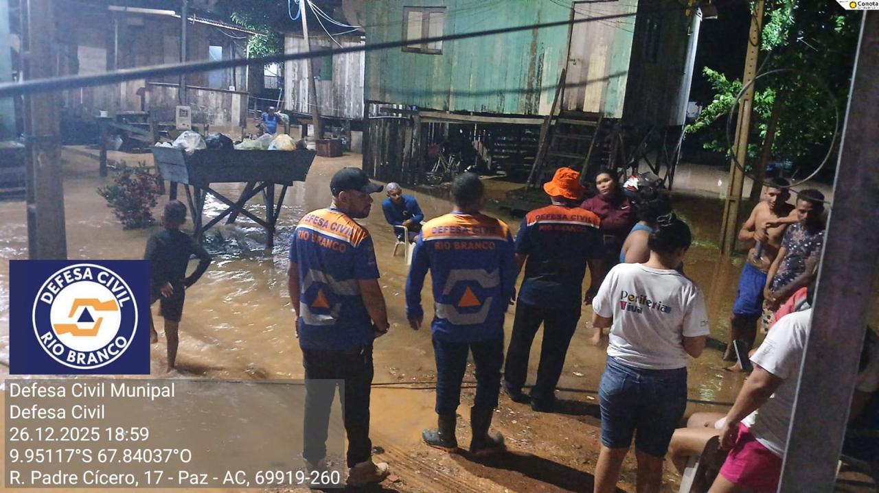 Com as chuvas intensas, diversos bairros de Rio Branco foram afetados, e equipes da Defesa Civil, Corpo de Bombeiros e demais órgãos municipais atuam no atendimento às ocorrências, no monitoramento das áreas de risco e na orientação às famílias atingidas.