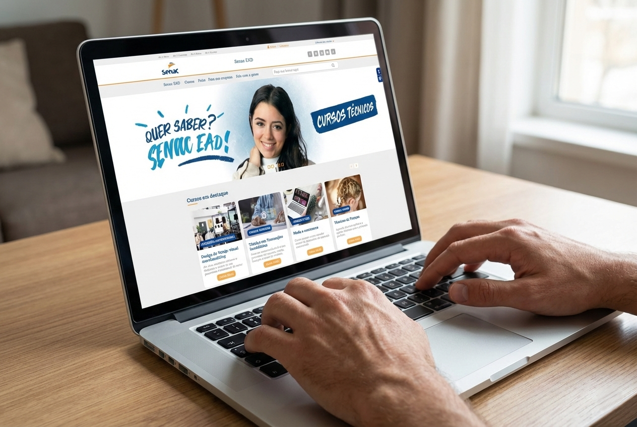 As inscrições para a Graduação EAD do Senac estão abertas, com matrículas disponíveis até o dia 8 de fevereiro de 2026, pelo site ead.senac.br. As aulas têm início a partir de 2 de fevereiro. O portfólio inclui cursos de bacharelado e tecnologia nas áreas de gestão, negócios, design, gastronomia e tecnologia da informação, todos autorizados pelo Ministério da Educação (MEC) e ofertados por uma instituição com nota máxima no recredenciamento institucional.