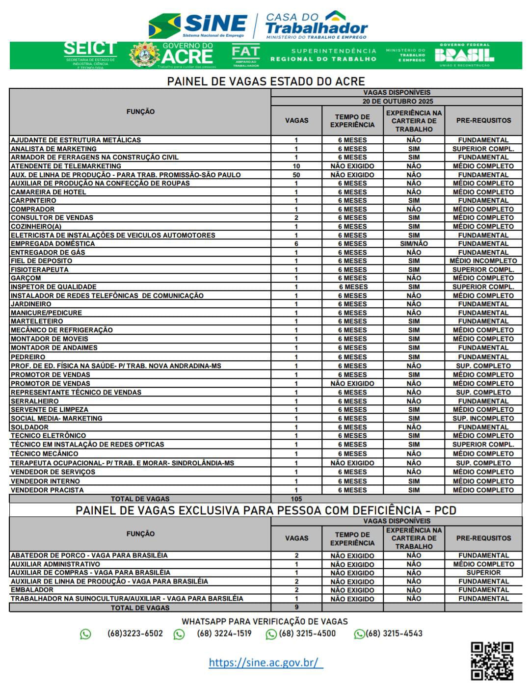 Os candidatos que ainda não possuem cadastro ou que precisam atualizá-lo devem entrar em contato com o Sine para regularizar sua situação. O cadastro pode ser feito via WhatsApp pelos números 3223-6502, 3224-1519 ou 3215-4500.