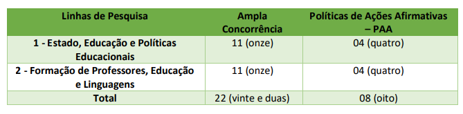 O edital também prevê reserva de 25% das vagas para ações afirmativas, contemplando candidatos negros (pretos ou pardos), indígenas, quilombolas, pessoas com deficiência (PcD) e pessoas trans. Ao todo, 8 vagas são reservadas, enquanto as demais 22 vagas são destinadas à ampla concorrência e demais demandas.