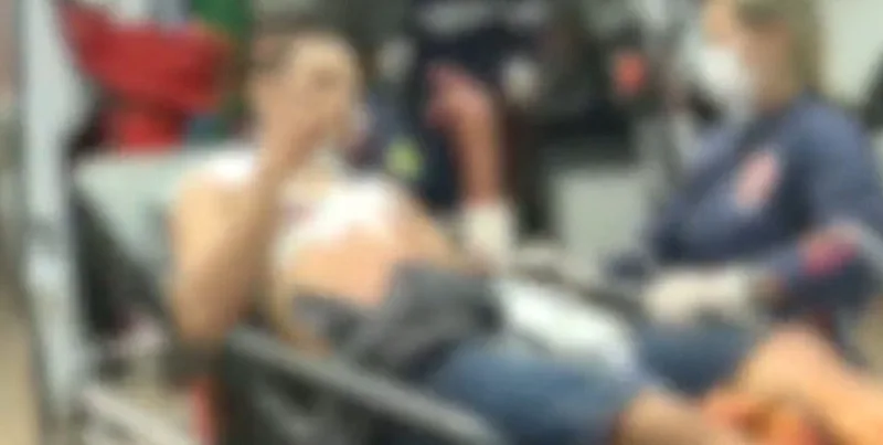 “Tem vários ferimentos por arma branca no tórax. O paciente totalmente alterado, agressivo. Na chegada ao PS, jogou soro nas equipes de imprensa. Dentro da ambulância por muitas vezes ameaçou a equipe, não deixou examinar”, conta o médico Jonathan Santiago, responsável pela ocorrência.